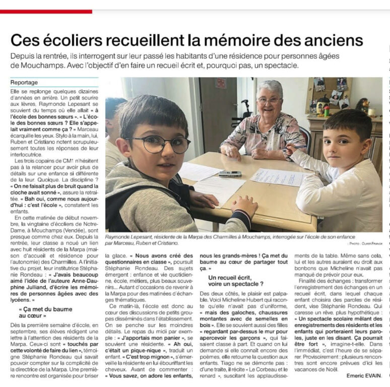« Nov. 2025 – Projet intergénérationnel, classe de CM1 : la presse en parle !